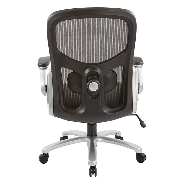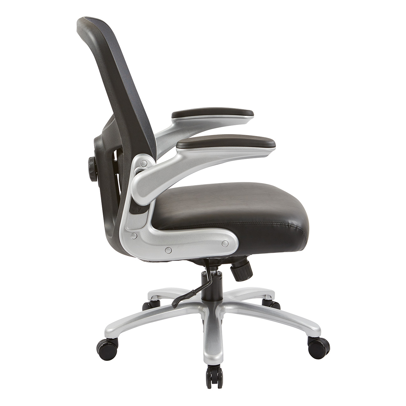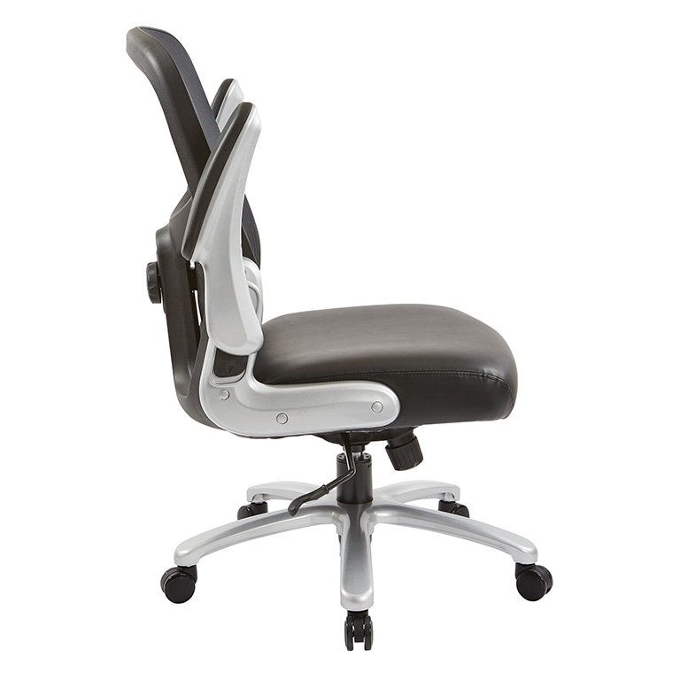 Thick padded contour black bonded leather seat & mesh back with adjustable lumbar